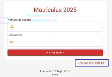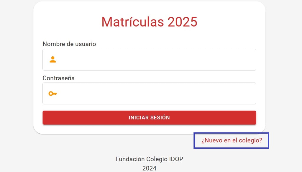Debe ingresar en las letras rojas ¿Nuevo en el colegio? y dar inicio al proceso.