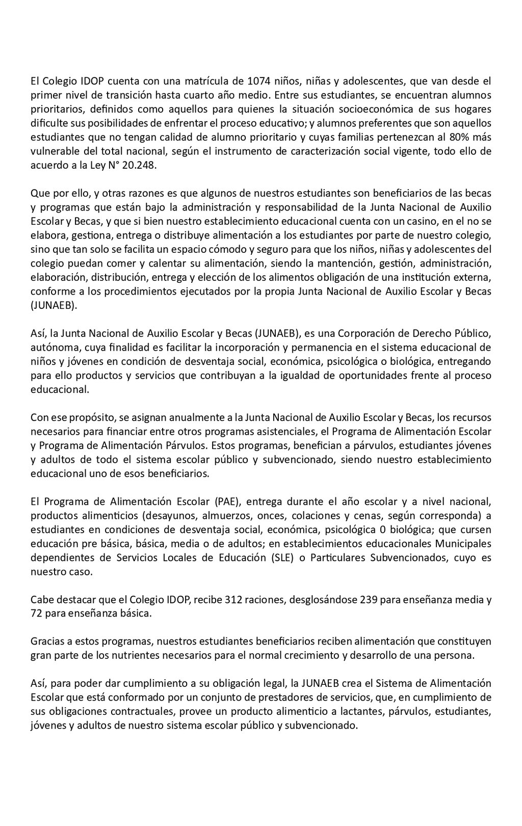 Comunicado Caso Minuta JUNAEB