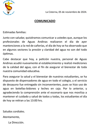 Comunicado situación agua