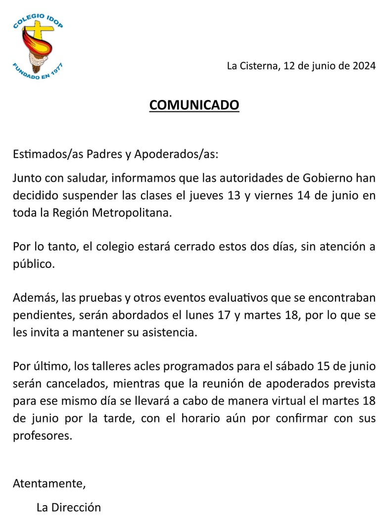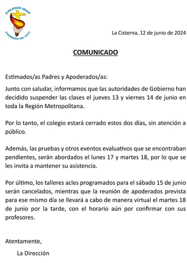 Suspención clases junio 2024